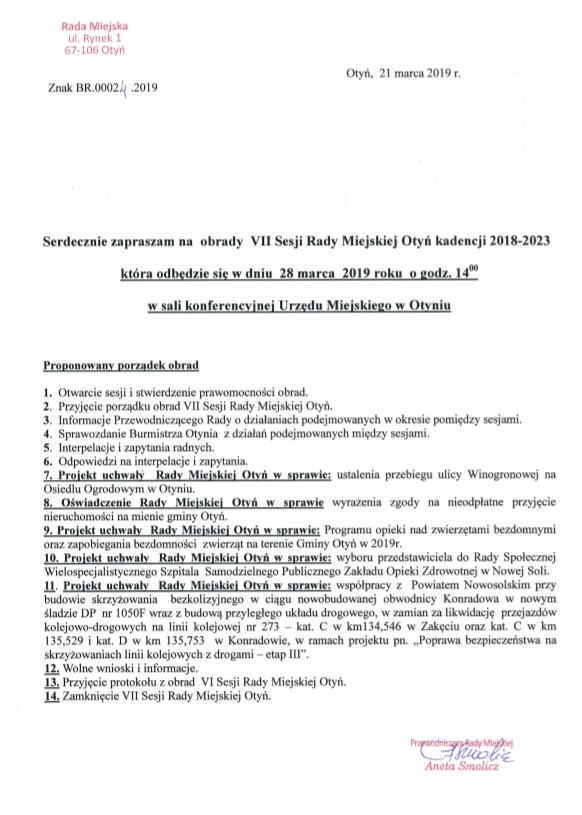 VII SESJA RADY MIEJSKIEJ OTYŃ