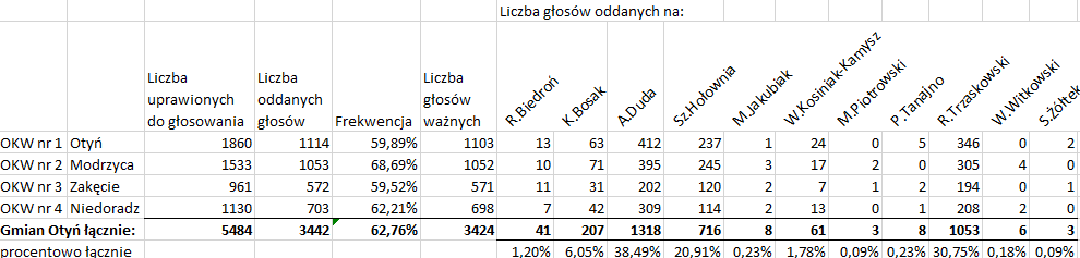 Przedstawiamy Państwu oficjalne wyniki wyborów prezydenckich na podstawie protokołów Obwodowych Komisji Wyborczych z Gminy Otyń.