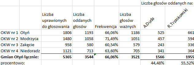 Oficjalne wyniki wyborów w Gminie Otyń