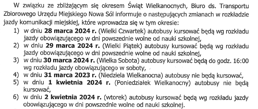 Zmiany w rozkładzie jazdy na Wielkanoc