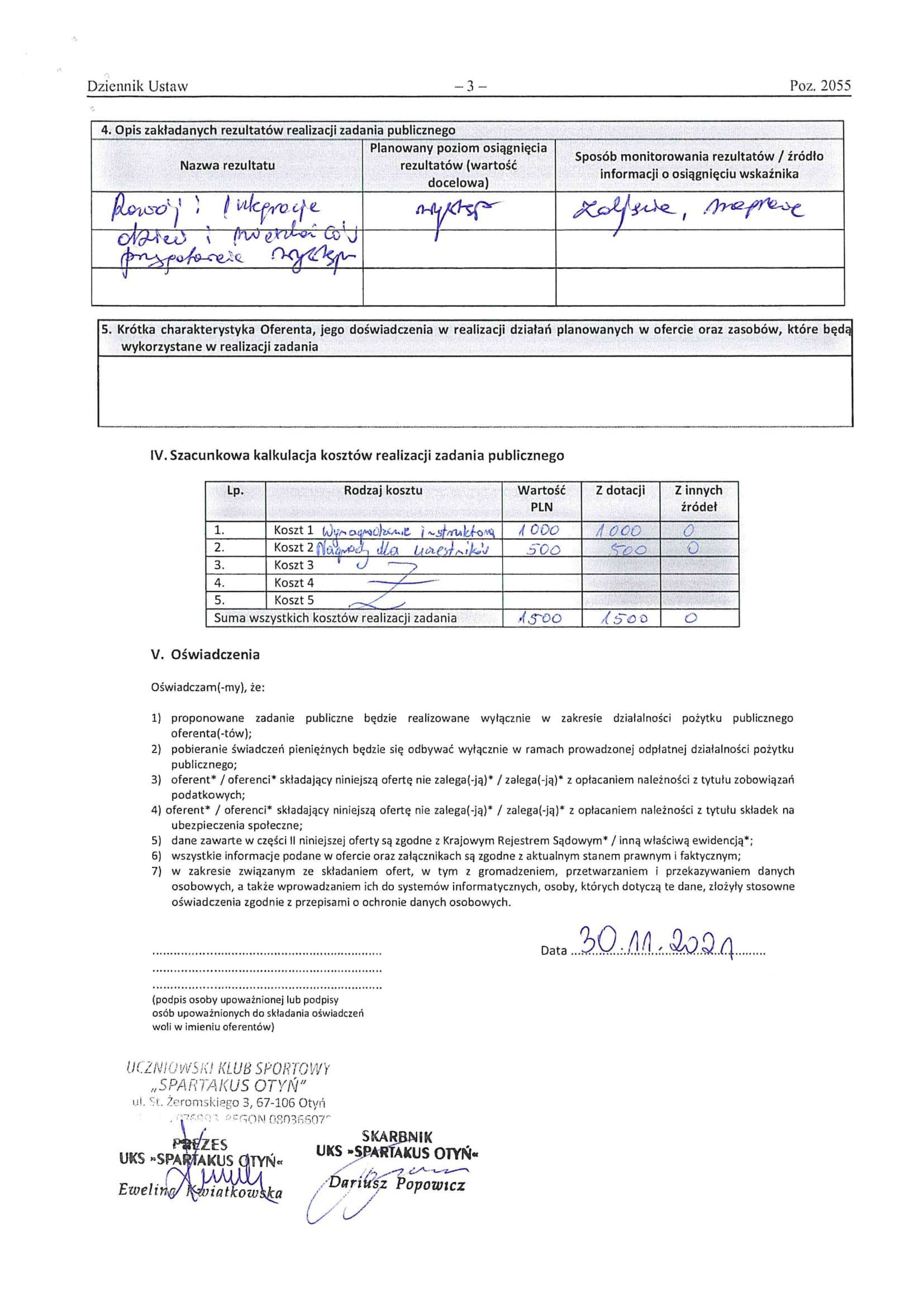 -zaświadczenia ze szkoły, w której uczy się dziecko, że uczeń nie otrzymał na własność lub w drodze użyczenia, w ostatnim roku oraz roku poprzedzającym rok złożenia przedmiotowego wniosku (tj. w roku 2020 i 2021), sprzętu komputerowego zakupionego ze środków publicznych lub środków organizacji pozarządowych, lub zwrotu kosztów, lub dofinansowania zakupu tych rzeczy. Zaświadczenia nie muszą przedstawiać rodzice/opiekunowie uczniów szkół podstawowych znajdujących się na terenie Gminy Otyń.