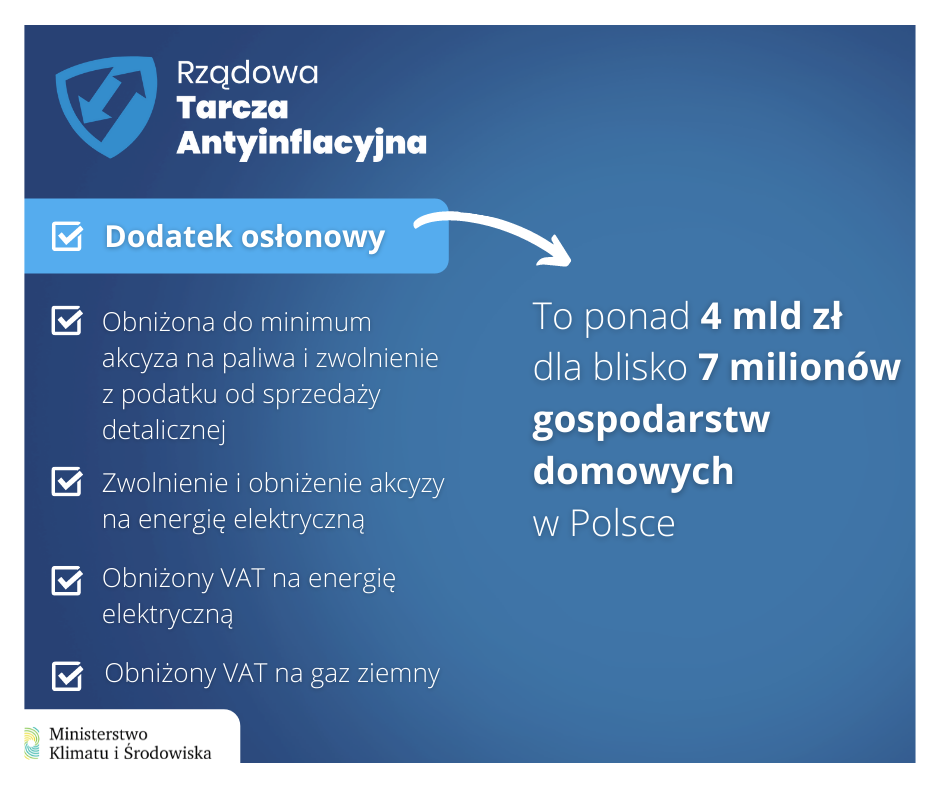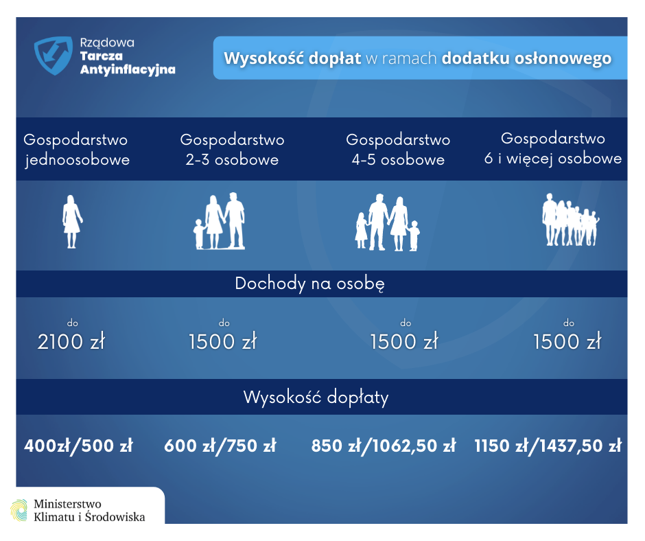 Dodatek osłonowy jest elementem rządowej Tarczy Antyinflacyjnej, który ma zniwelować rosnące ceny energii, gazu i żywności.