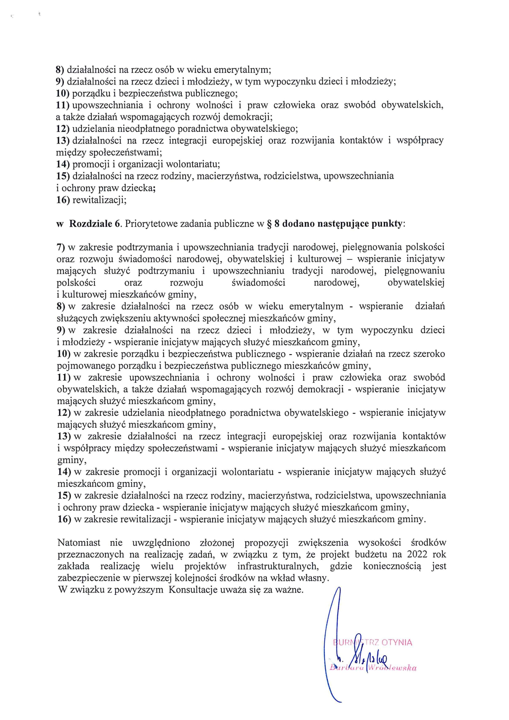 Ogłoszenie w sprawie przeprowadzenia konsultacji projektu uchwały w sprawie: programu współpracy Gminy Otyń z organizacjami pozarządowymi oraz podmiotami prowadzącymi działalność pożytku publicznego na rok 2022