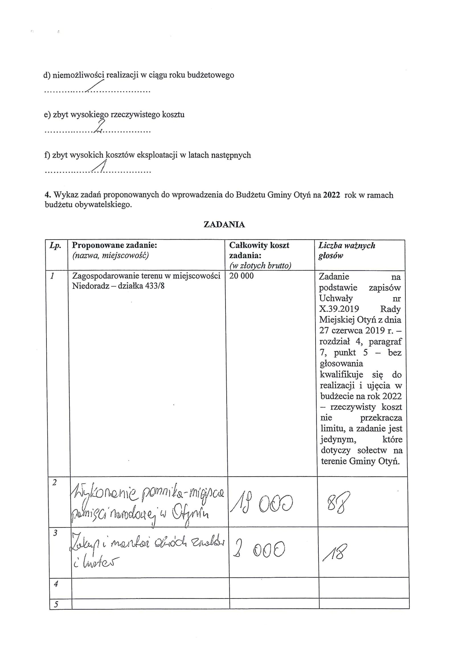 Protokół ustalenia zbiorczych wyników z przeprowadzonych konsultacji do budżetu obywatelskiego Gminy Otyń na rok 2022