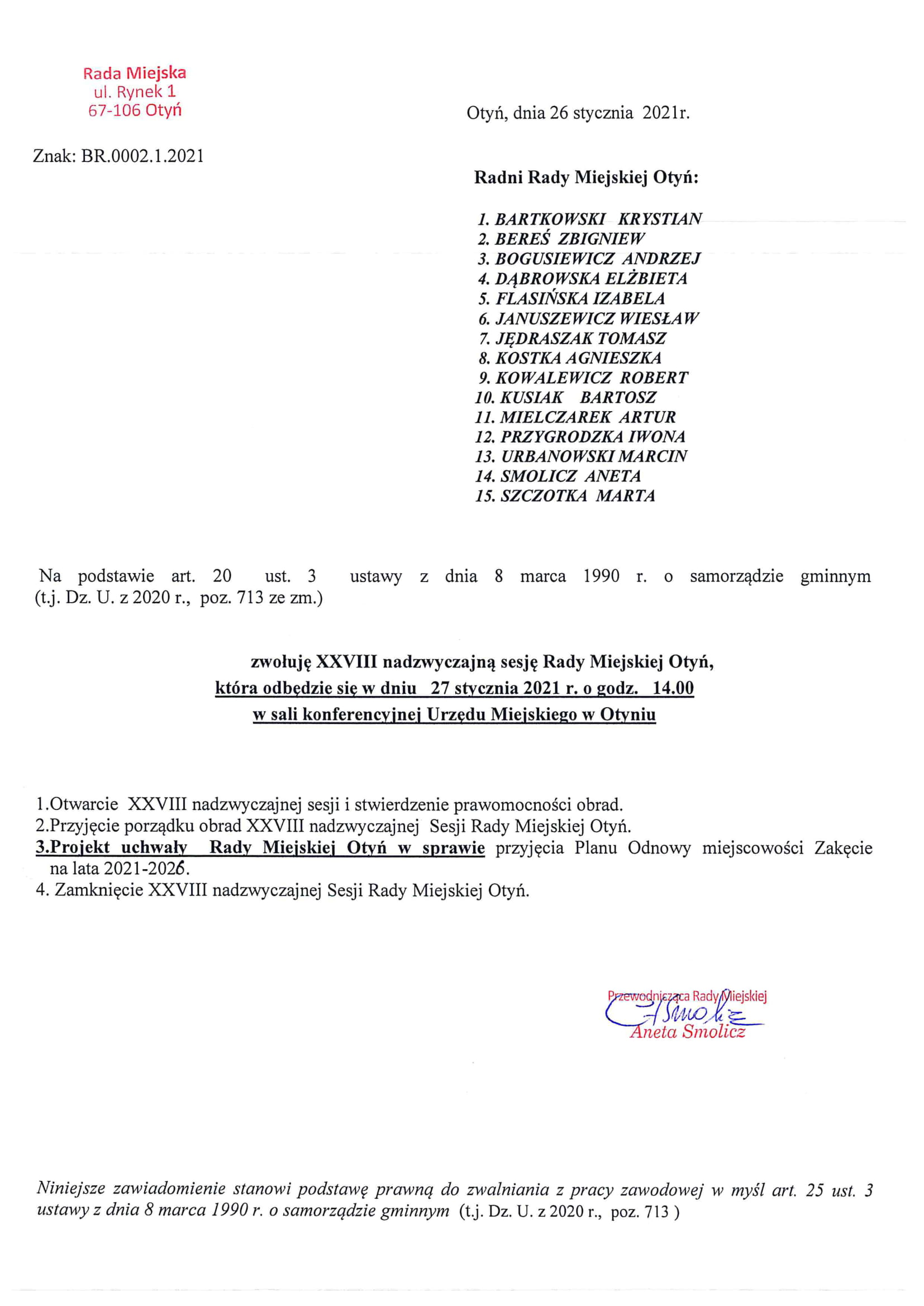 21. Przyjęcie protokołu z obrad XXVIII Sesji Rady Miejskiej Otyń.