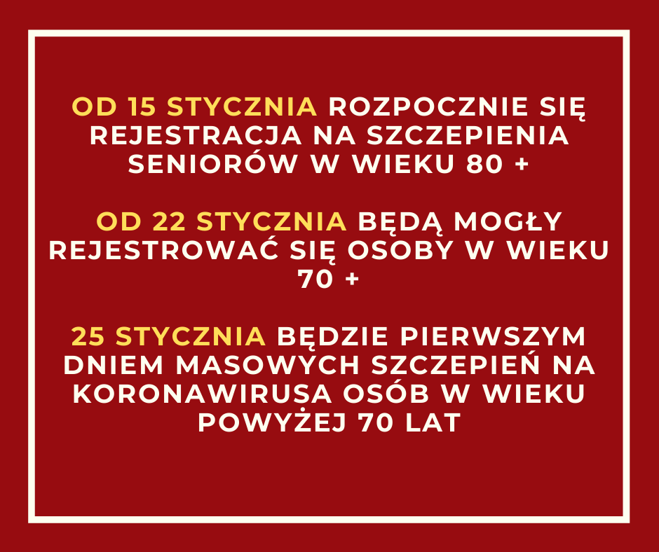 - Od 15 stycznia rozpocznie się rejestracja na szczepienia seniorów w wieku 80 +