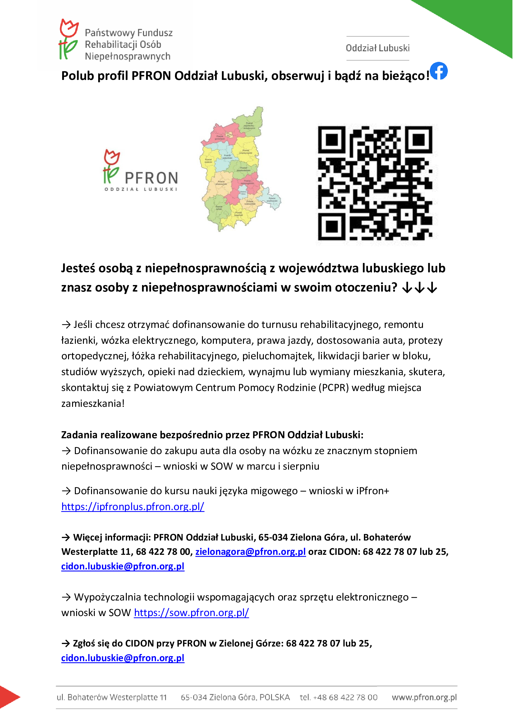 Polub profil PFRON Oddział Lubuski, obserwuj i bądź na bieżąco!