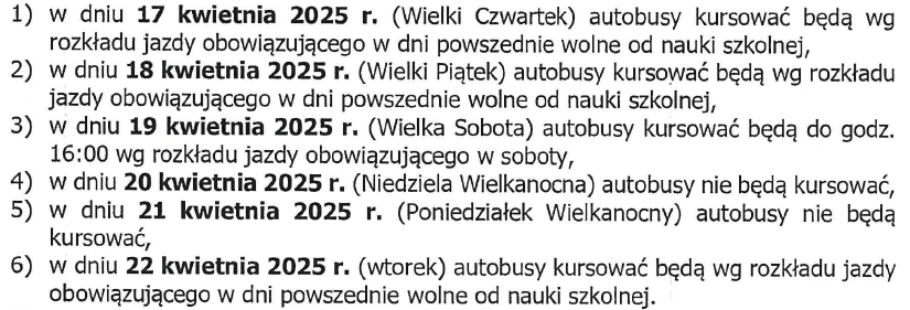 W związku ze zbliżającym się okresem Świąt Wielkanocnych MPK SubBus informuje o następujących zmianach w rozkładzie jazdy komunikacji miejskiej: