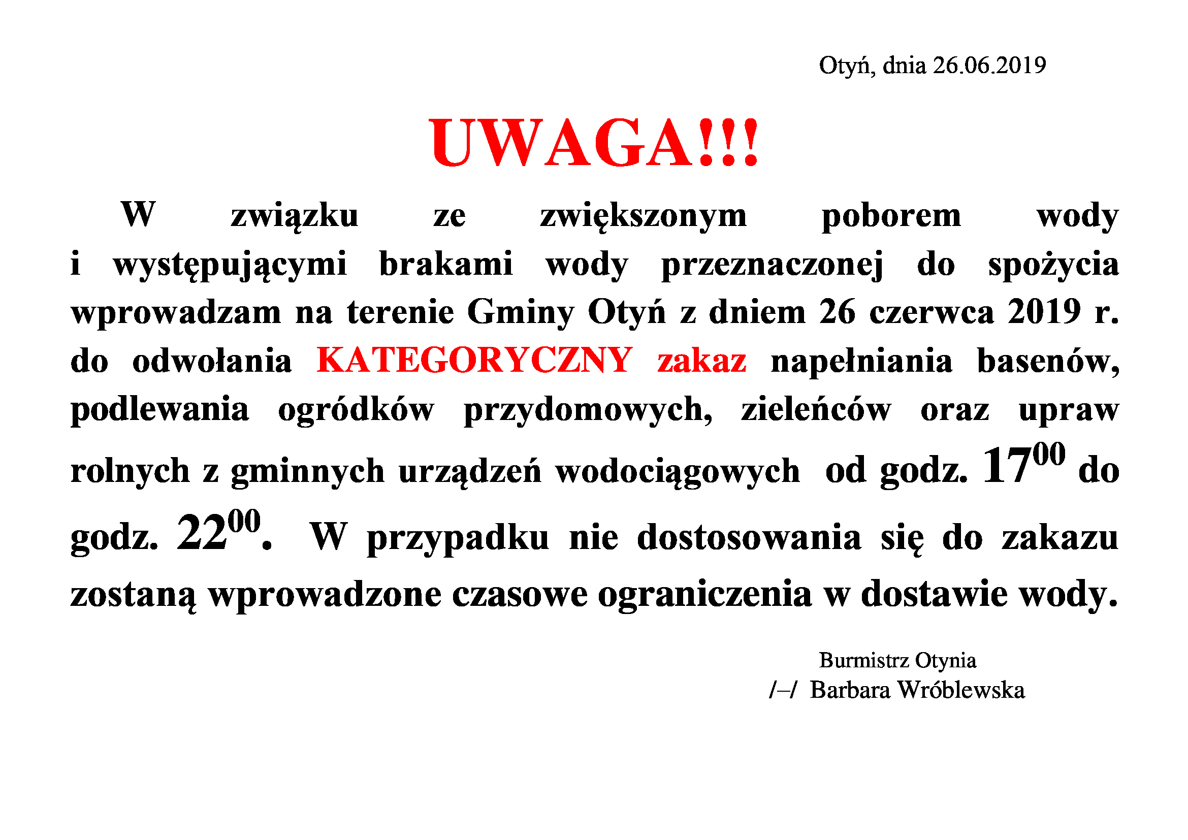OGŁOSZENIE W SPRAWIE WODY