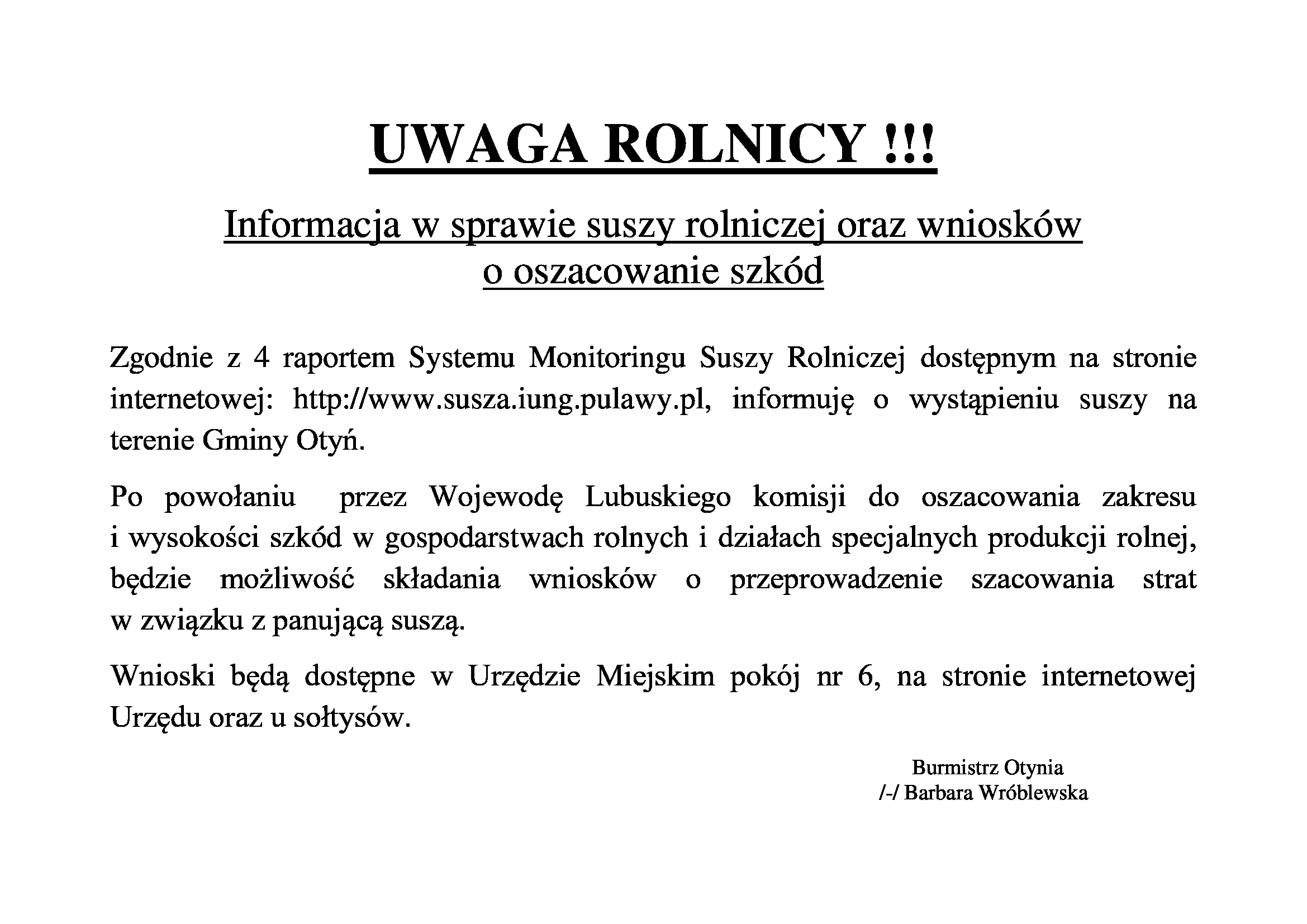 UWAGA SUSZA- BRAK WODY